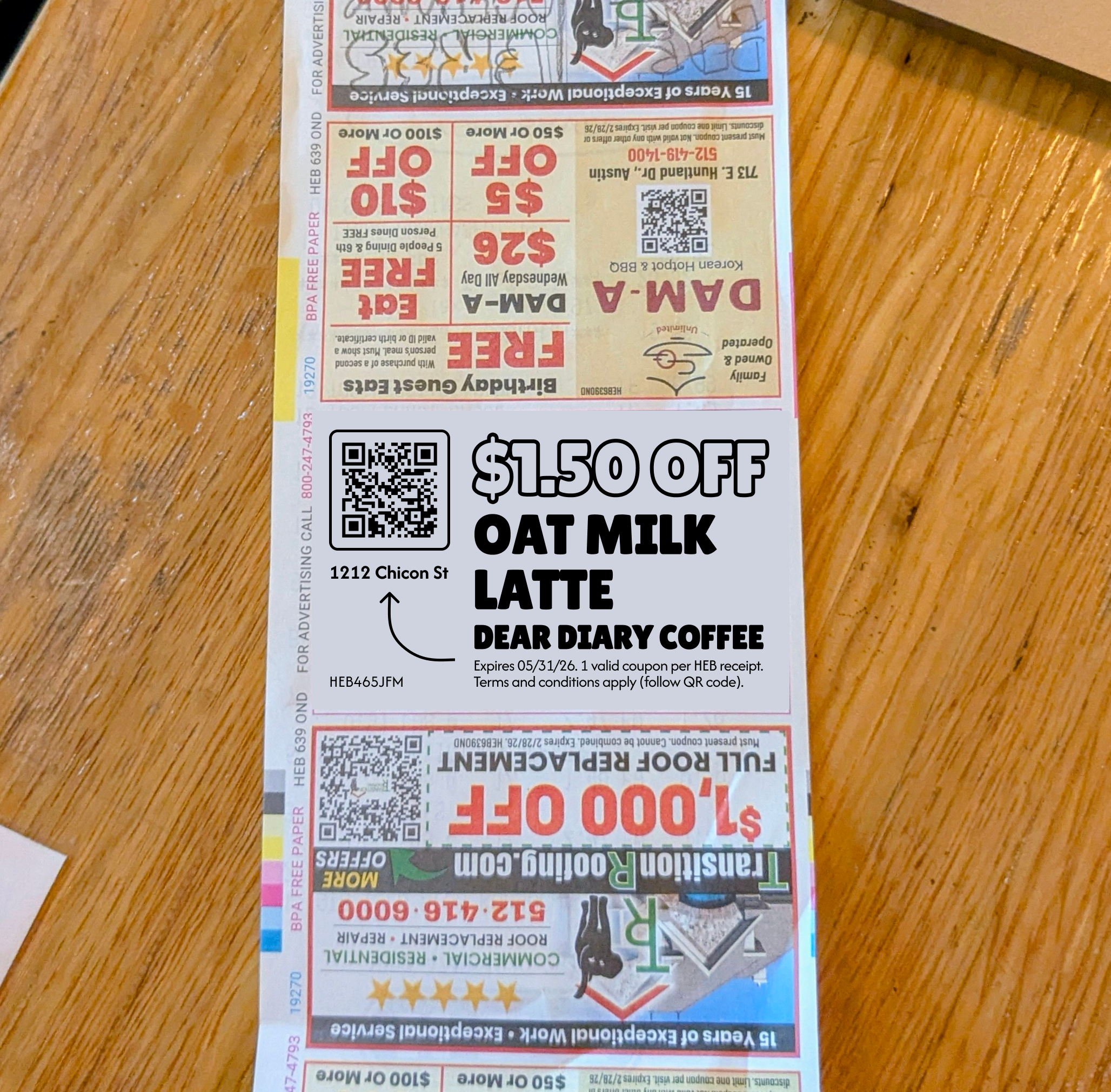 Each receipt-with-coupon may be redeemed for exactly ONE of the following: